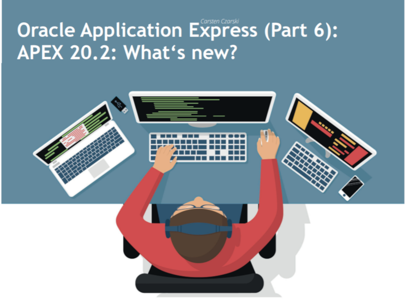 Carsten Czarski, seit 2016 Mitglied des APEX-Entwicklungsteams, gibt in der aktuellen ORAWORLD-Ausgabe einen detaillierten Überblick über die neuen Möglichkeiten von APEX 20.2. Neben großen Neuerungen wie der Cards Region, den Automations oder den neuen Druckmöglichkeiten beleuchtet der Experte zudem einige kleinere Verbesserungen und Features, die ab sofort APEX-Anwendungen bereichern und den Entwicklern die Arbeit erleichtern.