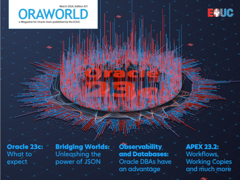 Das Datenbank-Release Oracle 23c steht kurz bevor. Dementsprechend widmen sich in der aktuellen Ausgabe viele Artikel der neuen Datenbankversion, die das nächste Long-Term-Release darstellt und zudem die erste Oracle-Datenbankversion ist, die ausschließlich die Multitenant-Architektur enthält. Darüber hinaus gibt es spannende Artikel rund um Oracle APEX und die Oracle Cloud.
